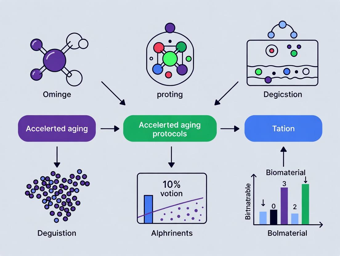 Effective accelerated aging protocols are indispensable for the timely and safe translation of biodegradable materials into clinical use. A successful strategy must be rooted in a deep understanding of material-specific degradation kinetics (Intent 1), meticulously applied through standardized yet adaptable methodologies (Intent 2). Researchers must proactively troubleshoot non-Arrhenius behavior and environmental artifacts (Intent 3) and rigorously validate predictions against real-time data and benchmark standards (Intent 4). The future lies in developing multi-stress models that better simulate the in vivo environment and leveraging machine learning to analyze complex degradation datasets. By mastering these protocols, researchers can significantly de-risk development, provide robust data for regulatory submissions, and ultimately accelerate the delivery of next-generation biodegradable medical devices and implants to patients.