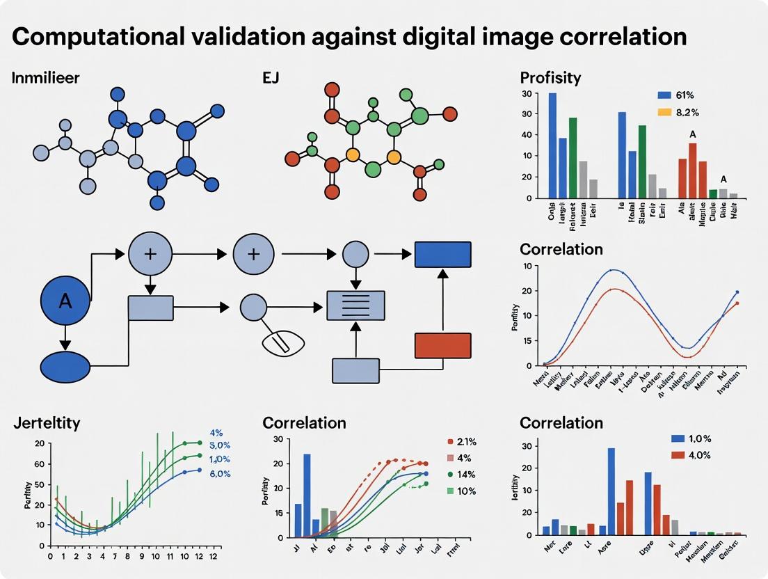 Validating computational predictions with Digital Image Correlation is not merely a final step but a foundational practice that underpins credible biomedical research and development. By establishing a rigorous workflow—from understanding first principles to applying quantitative validation metrics—researchers can significantly enhance the predictive power and regulatory acceptance of their models. The convergence of high-fidelity DIC data and advanced computational techniques promises more reliable simulations of complex biological systems, from stent deployment to soft tissue mechanics. Future directions include the integration of AI for automated error detection, real-time DIC-FEA feedback loops, and the development of standardized validation protocols for emerging fields like bioprinting and organ-on-a-chip technologies, ultimately accelerating safer and more effective therapeutic innovations.