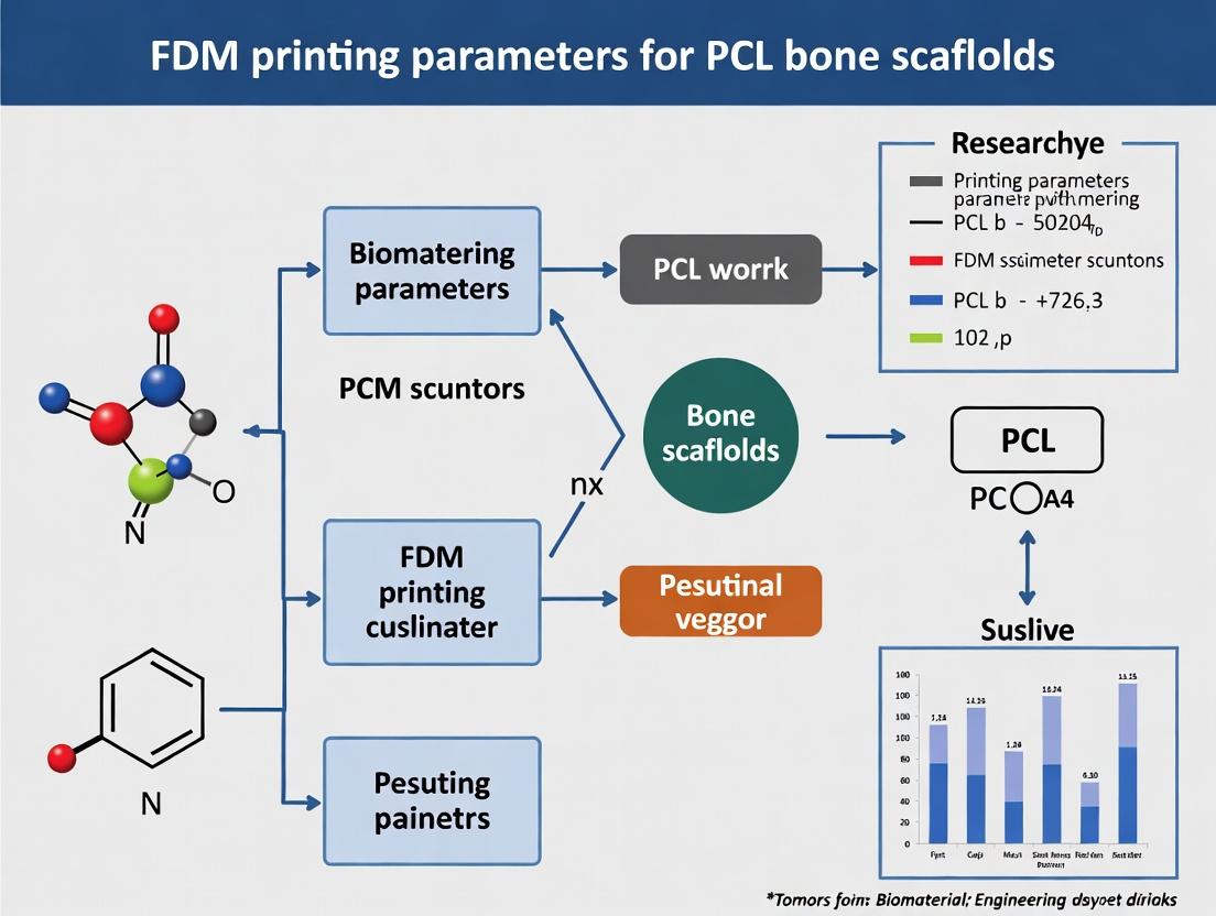 This comprehensive guide explores the critical Fused Deposition Modeling (FDM) printing parameters for fabricating polycaprolactone (PCL) bone scaffolds. Aimed at researchers and biomedical engineers, it details the fundamental properties of PCL, provides actionable methodologies for scaffold design and printing, addresses common troubleshooting and optimization challenges, and validates outcomes through mechanical and biological testing. The article synthesizes current research to enable the production of scaffolds with optimized porosity, mechanical strength, and biocompatibility for advanced bone tissue engineering applications.