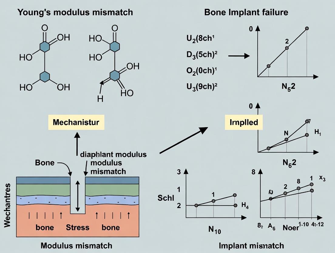 The fundamental premise of modern bone implant failure research centers on the mismatch in Young's modulus (elastic modulus) between bone and traditional implant materials. Cortical bone exhibits a modulus ranging from 10-30 GPa, while common metallic implants (e.g., cobalt-chrome, titanium alloys) possess a modulus of 110-220 GPa. This order-of-magnitude disparity leads to stress shielding, where the stiffer implant bears the majority of mechanical load, diverting physiological stress away from the adjacent bone. According to Wolff's law, bone remodels in response to mechanical stimuli; reduced stress leads to catabolic remodeling, net bone resorption, implant loosening, and eventual mechanical failure.