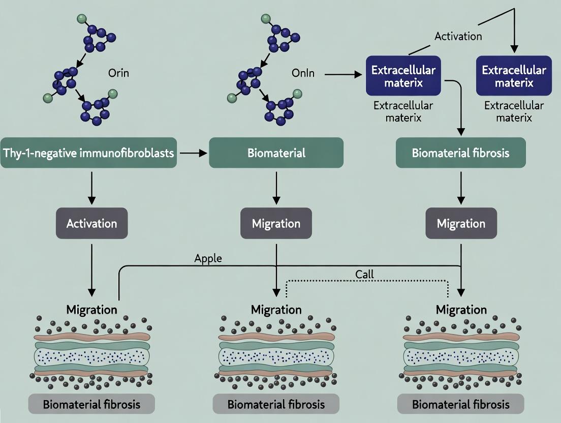 The Thy-1 glycoprotein (CD90) serves as a key lineage marker that stratifies fibroblasts into functionally divergent subsets. In the context of biomaterial implantation, the prevailing thesis posits that Thy-1- fibroblasts are preferentially recruited and activated by the persistent, low-grade inflammatory milieu of the foreign body response. Unlike the reparative, matrix-producing Thy-1+ fibroblasts, Thy-1- immunofibroblasts perpetuate a cycle of inflammation and pathological remodeling, directly challenging long-term biomaterial integration.